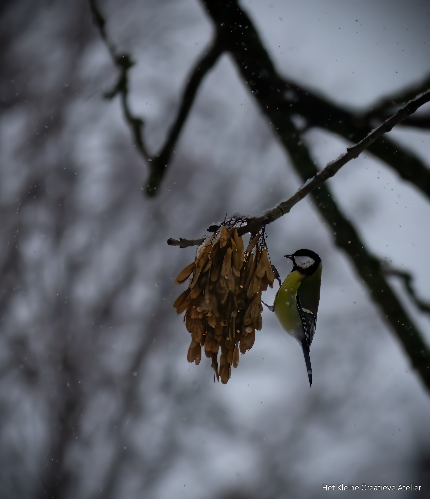 This fine art print captures a great tit on a winter’s day, clinging to a cluster of withered leaves. In search of food within a scarce landscape, it embodies the beauty of simplicity, resilience, and the quiet poetry of winter.