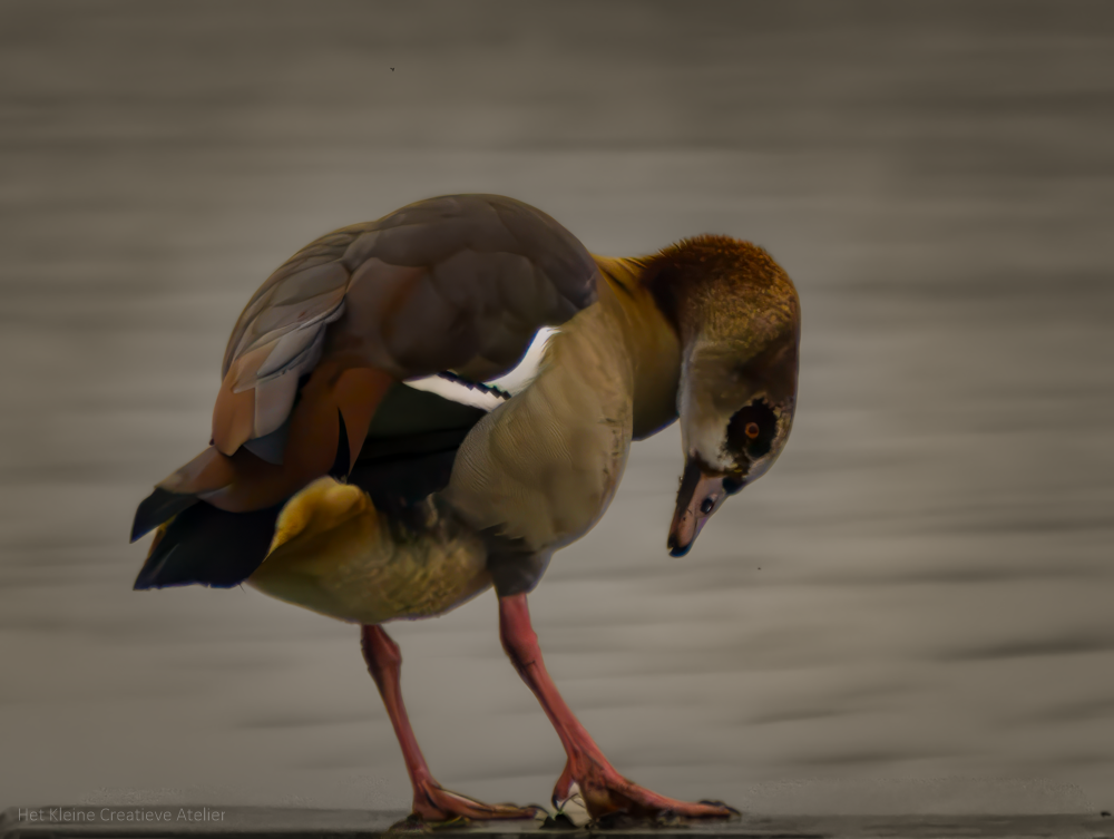 I encountered this Egyptian goose together with its partner at the Jagerplas in Zaandam. The goose was very vocal and alert, which gave me the impression that it was the male. Telling the sexes apart in Egyptian geese is difficult, as males and females look almost identical. Males are generally a bit larger and more robust, which further strengthened my assumption that the male was keeping watch over his mate.