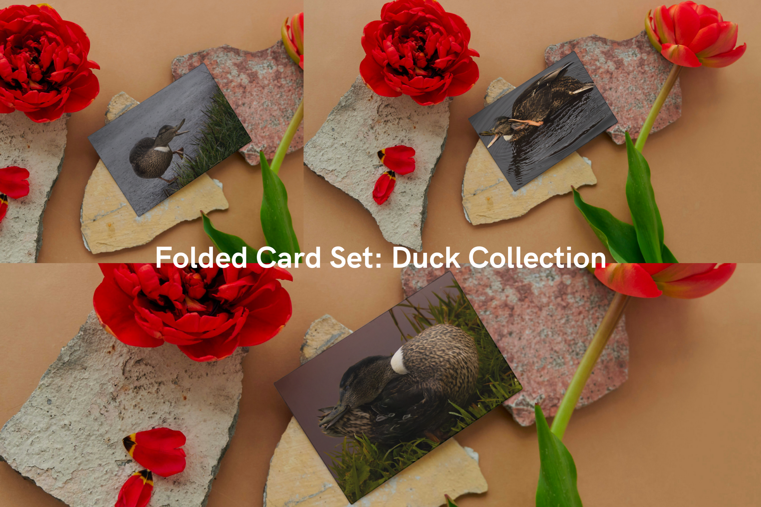 This charming set of three folded cards features adorable duck illustrations, each perfect for any occasion.
