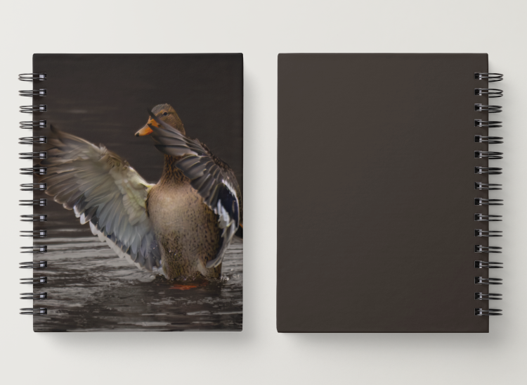 The photograph on this notebook shows a female duck spreading her wings after a bath — a moment of shaking off the water, resetting, and moving on. Calm, natural, and quietly powerful.